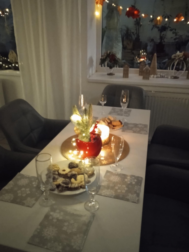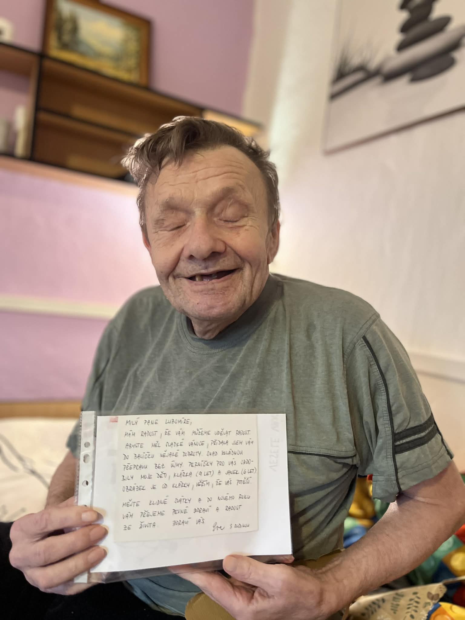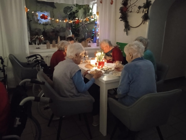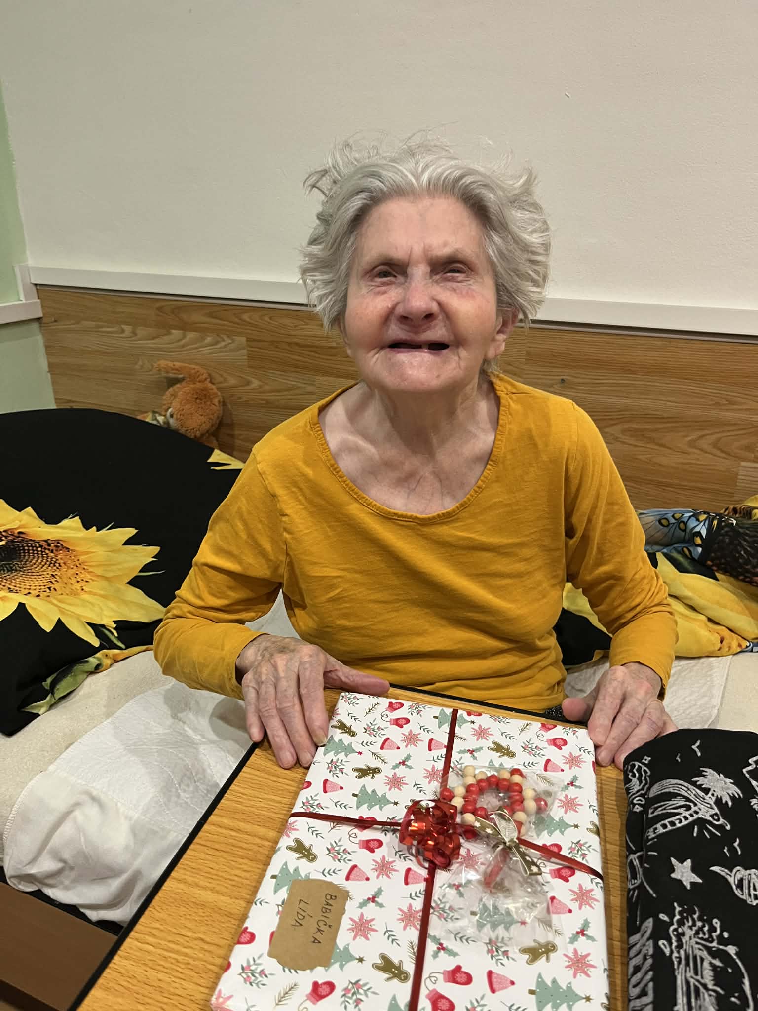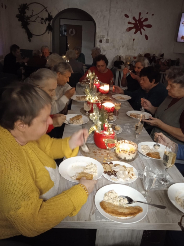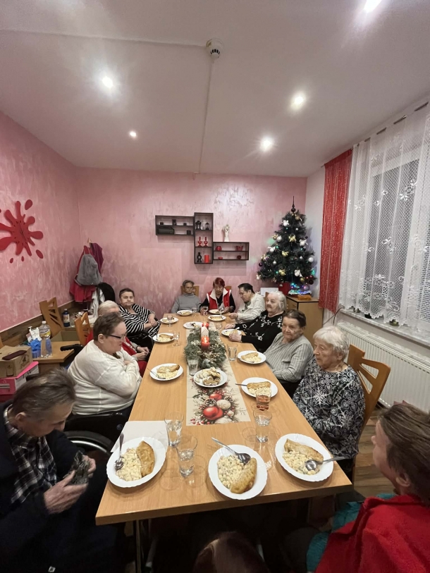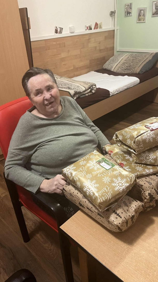 Štědrovečerní večeři a rozbalování dárků od Ježíška z rodin i dobrovolných dárců. Také Ježíškova vnoučata nám pomohla udělat radost.